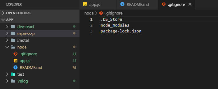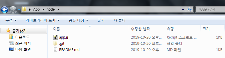 이제 프로젝트를 구성하기 위해서 저는 node라는 폴더에 app.js를 하나 만들겠습니다.