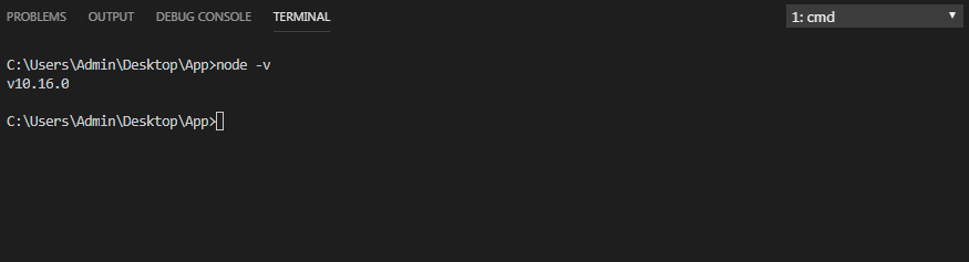 Ctrl + `를 누르면 터미널이 나오는데 이 터미널에서 node가 정상적으로 설치 되있는지 확인을 하기 위해